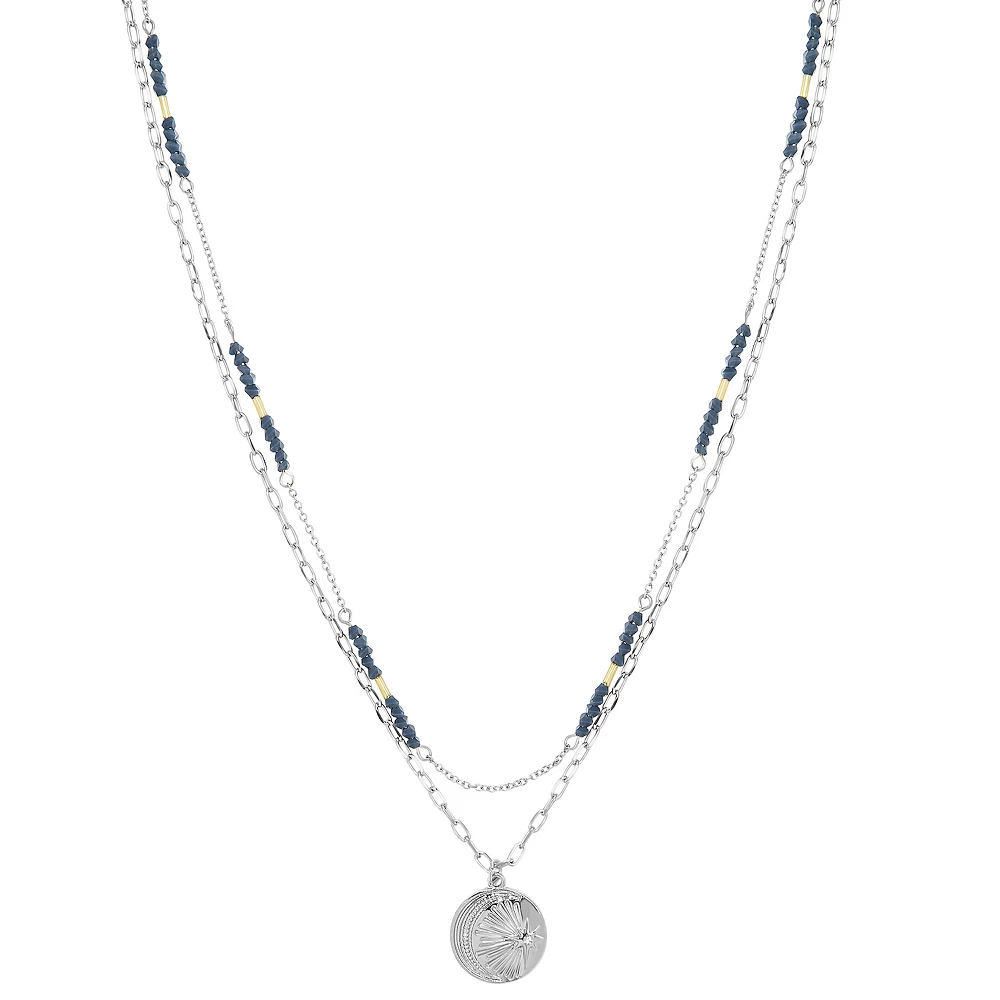 Accessorize in style with this Sonoma Goods For Life® 2 Row Blue Bead With Casted Coin Pendant Necklace.