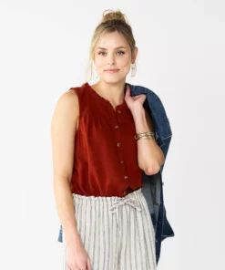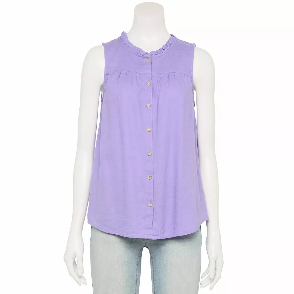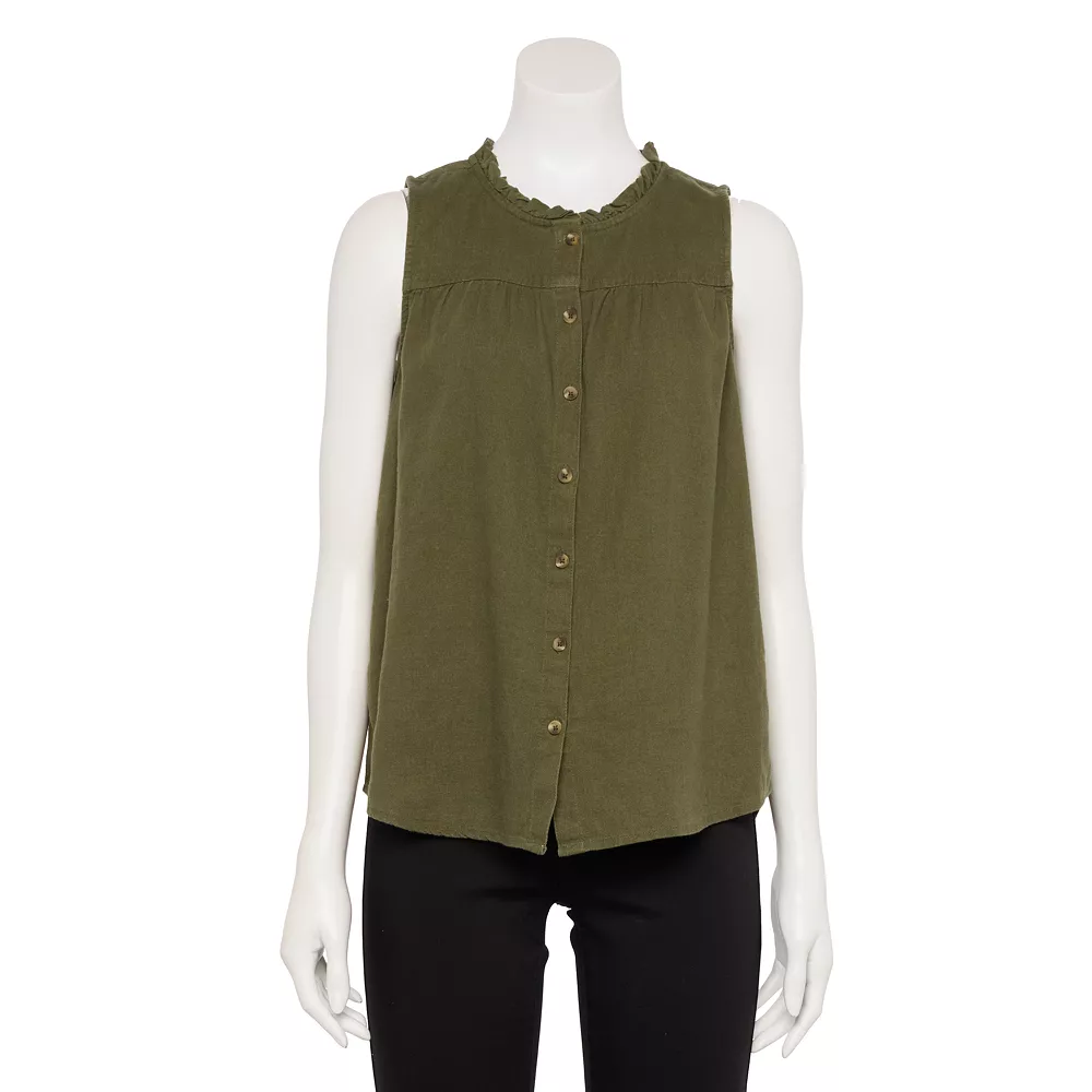 Go for a classic look with this women’s button-front ruffle tank from Sonoma Goods For Life.