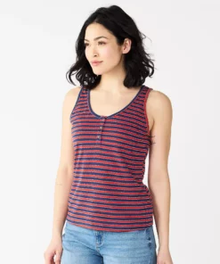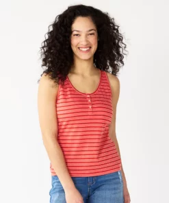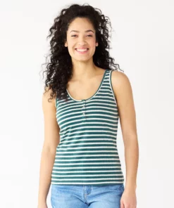 A slubbed cotton blend and striped print make this women’s Sonoma Goods For Life tank top a summer must-have.